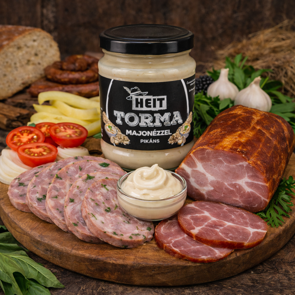 Amikor a jó hús találkozik a karakteres tormával, ott születik meg az igazi magyar hidegtál. A HEIT családi vállalkozás majonézes tormája pontosan ezt az élményt hozza az asztalra: krémes, telt állag, friss tormaerejével és lágy majonézes kerekítéssel.